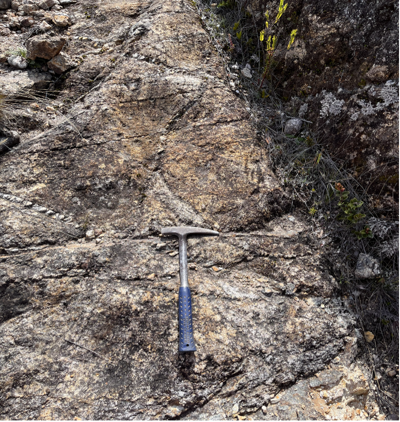Photo 1. Stockwork veinlets hosted in porphyric dacite in Real Minera zone